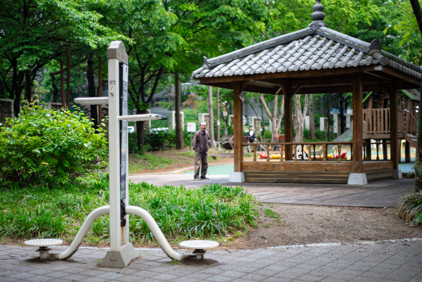 Jardin d’enfance or « Garden of Childhood » is an ongoing photo series, showcasing the Korean residential neighbourhood I have been living in for almost a year now. When I first arrived, I was struck by the sort of isolation that nature and urban engineering made possible. To this day it still feels like living in a cocoon, in a safe and warm bubble, outside of the real world’s worries. I quickly couldn’t help but think that despite the country’s rigid education system, growing up here as a young child must be like paradise. A safe heaven; quiet and surrounded by nature, far from the busy cities while still being lively and with modern South Korean infrastructure and conveniency (specifically 24hrs-open ice cream shops).